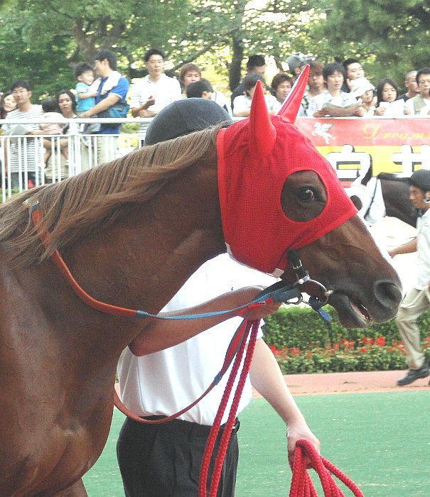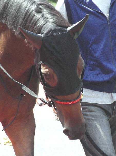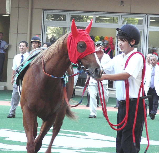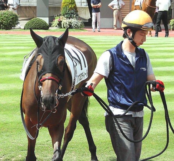 ジョッキーが跨ると更に気合いを見せ、小脚を使いながら馬場に向かった。