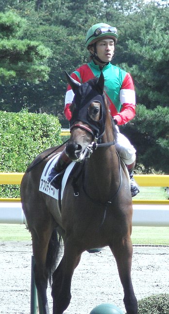 で鞍上の小牧太騎手が前のレースで騎乗、パドックでは