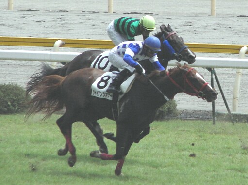 まるで先頭争いをしているような写真ですが、実際にはこの前にはかなりの出走馬がいました・・・^^;