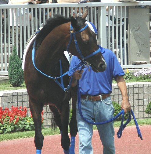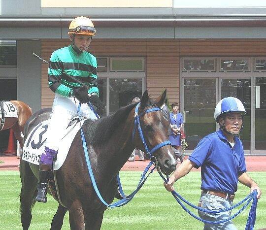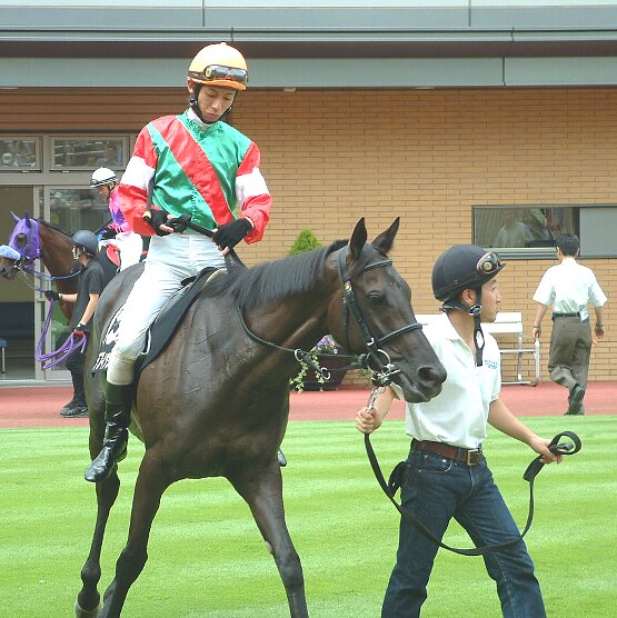 和田騎手を乗せて本馬場に向かうところ。