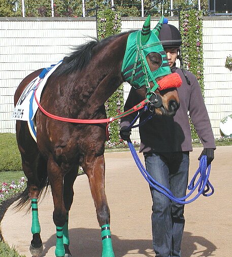 検量室前で鞍上の熊沢騎手を待っているところ。