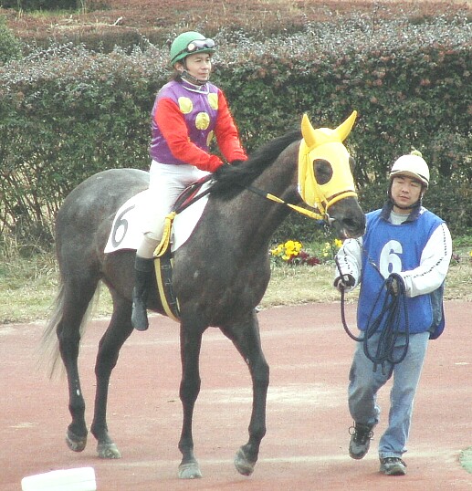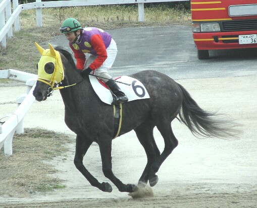 向山牧騎手を乗せたところです。
