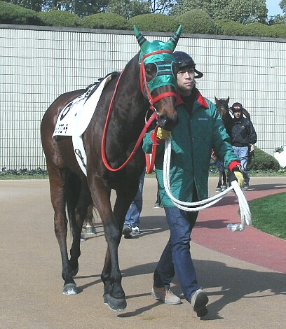 ジョッキーが跨ると更に集中力が増した感じで、小脚を使って馬場へ。